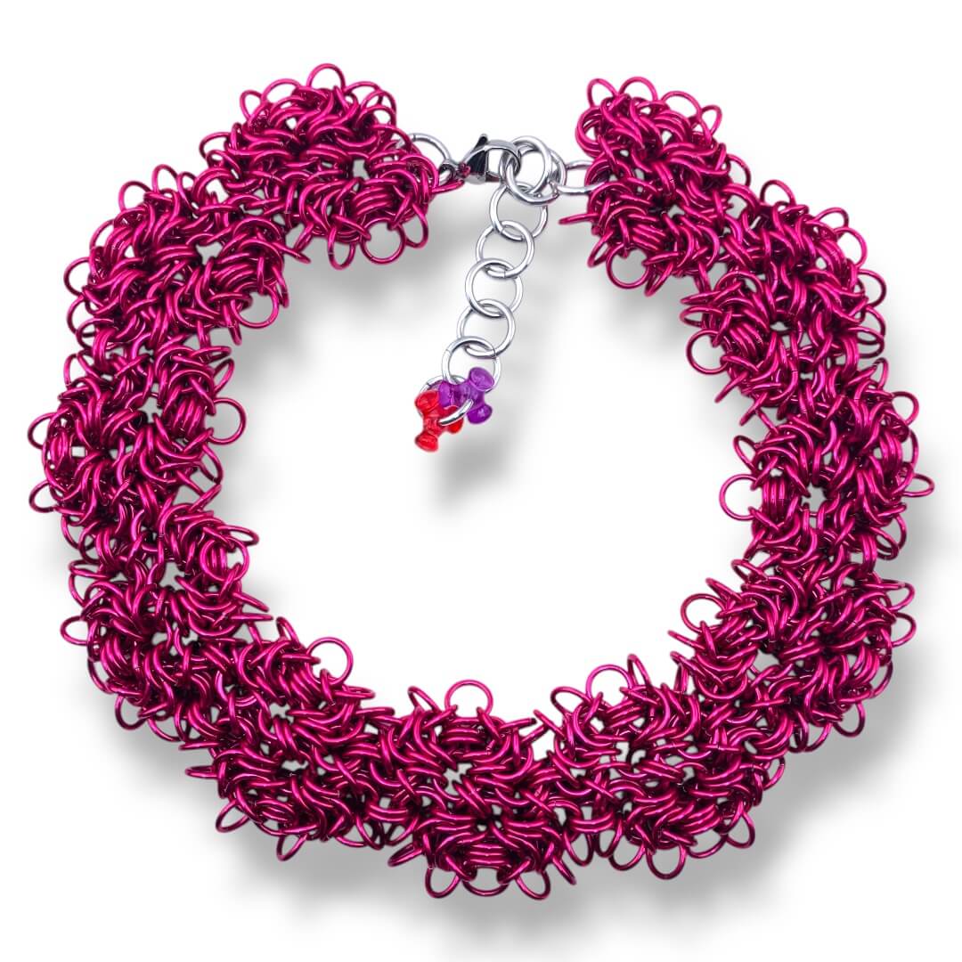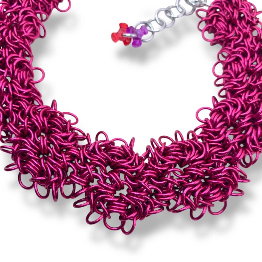 Handwoven ring by ring, the FRACTAL TAPESTRY HYPERPINK is a nod to early 2000s rave culture, remixed with codes from the future. This piece is an original design created in Montreal (Quebec) by LONY, an independent studio run by a queer woman. By purchasing from me, you are supporting ethical, locally made, handcrafted work.