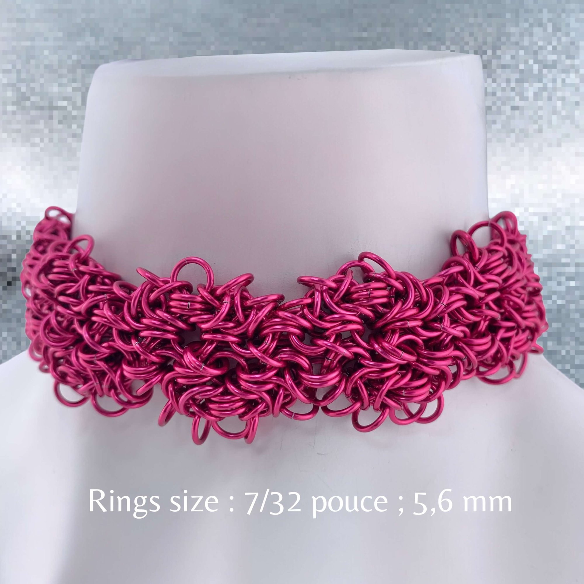 The choker is durable, lightweight, and hypoallergenic thanks to the use of high-quality anodized aluminum. It can be cleaned with a gentle, non-abrasive soap.